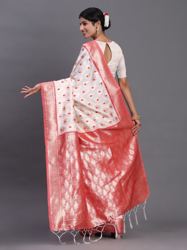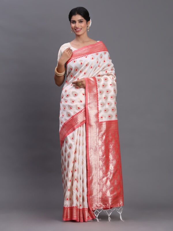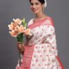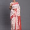 Beautifully Zari-Embroidered Saree with a contrast Red Border to light up the festivities this season